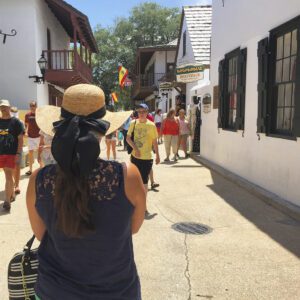 Cuando llevo a familia o amigos por primera vez al lugar… o bueno, también cuando vamos mi esposo, mis perros y yo, normalmente me estaciono cerca a St. Augustine and St. Johns County Visitor Information Center en donde encontrarás mucha información de actividades de la ciudad y más. Desde ahí camino hacia la calle St. George en donde cada paso que das vas a querer hacer alguna fotografía. Restaurantes, bares, tiendas y galerías, encuentras de todo en esta callecita peatonal.