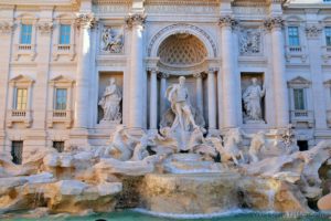 En Roma, aprovechando que nos hospedábamos muy cerca a la famosa fuente, decidimos despertar más temprano, incluso antes de desayunar, para acercarnos a la Fontana di Trevi. Nuestra visita en pleno verano (julio) cada vez que pasábamos al frente de la fuente, nos cruzábamos con una gran multitud que no podíamos hacer fotos o videos ni disfrutarla bien.