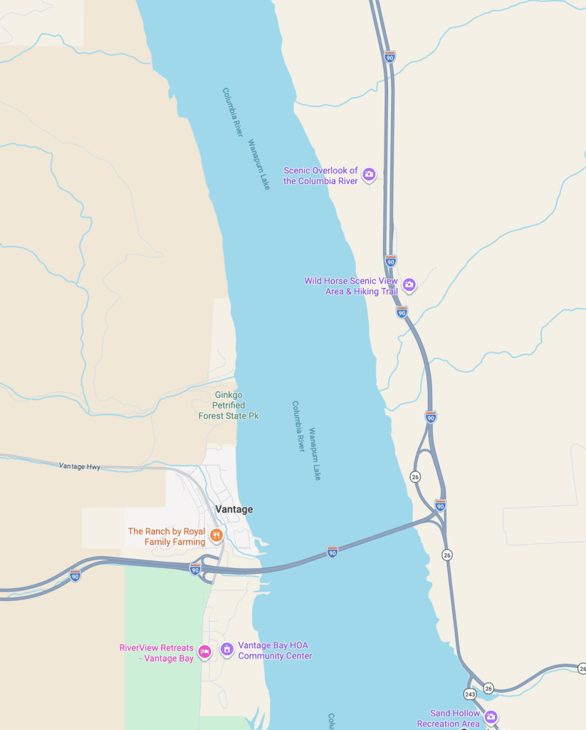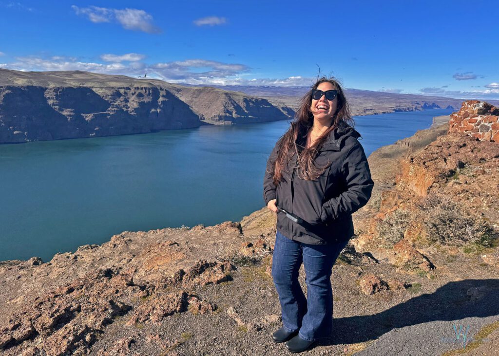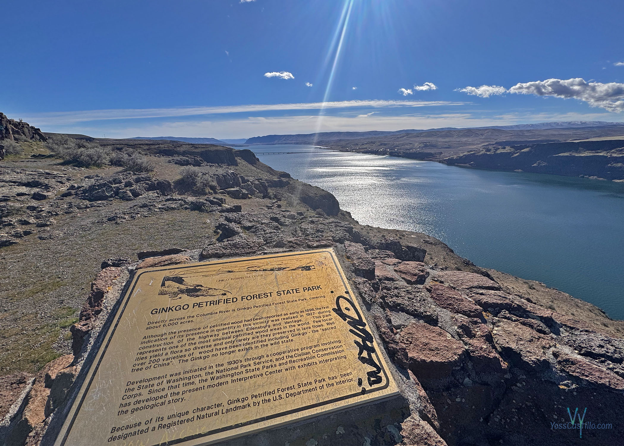 Nuestra idea original era detenernos en el Ginkgo Petrified Forest State Park, que está al otro lado del río. También lo visitamos, pero honestamente este mirador nos gustó incluso más por la amplitud de la vista.
